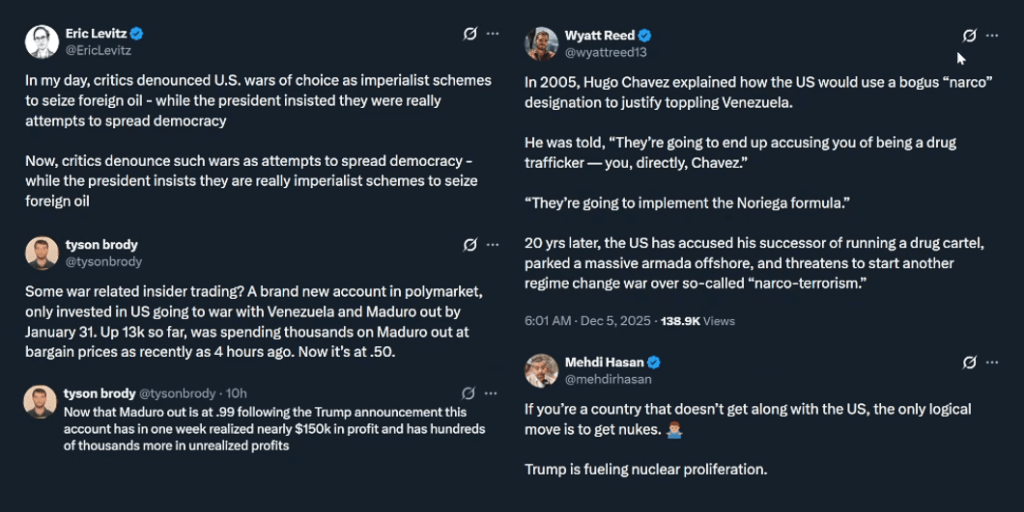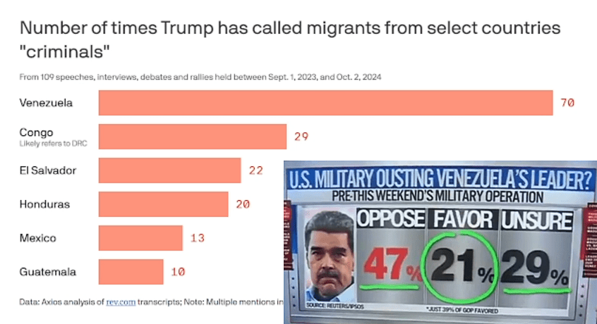 Przed interwencją poparcie dla działań wojskowych w Wenezueli wyrażało ok. 20% Amerykanów, a niemal 50% było przeciw. Dzięki tradycyjnie idiotycznej i pro-imperialnej postawie mediów opinie zaczynają się już jednak wyrównywać.