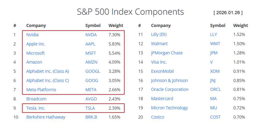 Firmy wchodzące w skład tak zwanej „wspaniałej siódemki” – Alphabet, Amazon, Apple, Meta, Microsoft, Nvidia i Tesla – stanowią aktualnie jedną trzecią indeksu S&P 500 (sama Nvidia to ok. 7%), podczas gdy w 2020 było to ok. 20%.