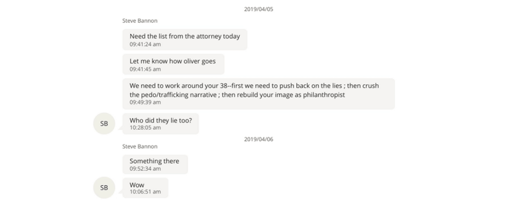 Woody Allen ponoć proponował pomoc w montażu wywiadu wybielającego E. Bannon chciał go przedstawiać jako filantropa i odwracać uwagę poprzez globalne ocieplenie, zagrożenie AI, etc. R. Branson też doradzał w PR-owym wybielaniu. To samo Chomsky!