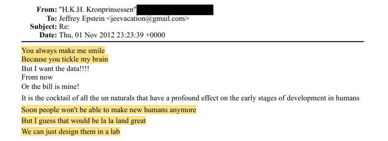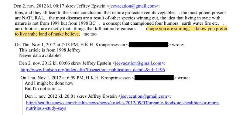 Norweska królewna pyta E. jak pokazać swoim synom zdjęcia nagich kobiet, jak byłoby odpowiednio. W 2012 roku, kilka lat po jego skazaniu (sic!). Jeden z synów ma teraz zarzuty o 4 gwałty i 34 inne sprawy. Królewna pojawia się w aktach E. ponad 1000 razy!